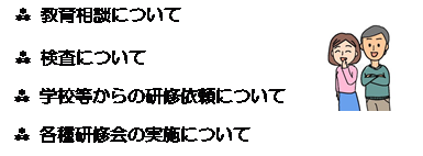 子育てや教育に関する相談に応じています。保護者の方や学校の先生方からの相談をお待ちしています。