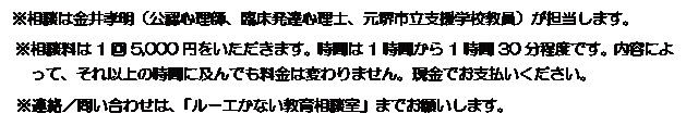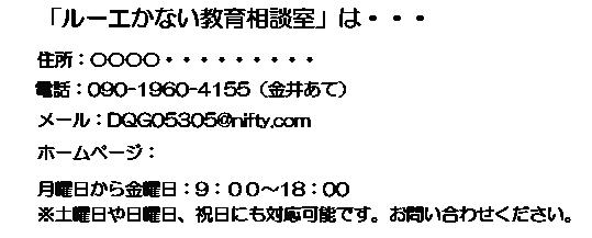※連絡/問い合わせは、「ルーエかない教育相談室」までお願いします。 ※連絡/問い合わせは、「ルーエかない教育相談室」までお願いします。