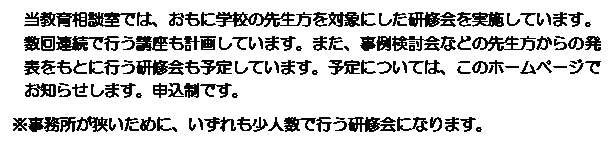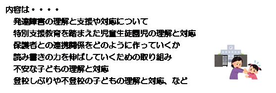 また、研修等で最近の特別支援教育に関する様々な情報も発信しています。